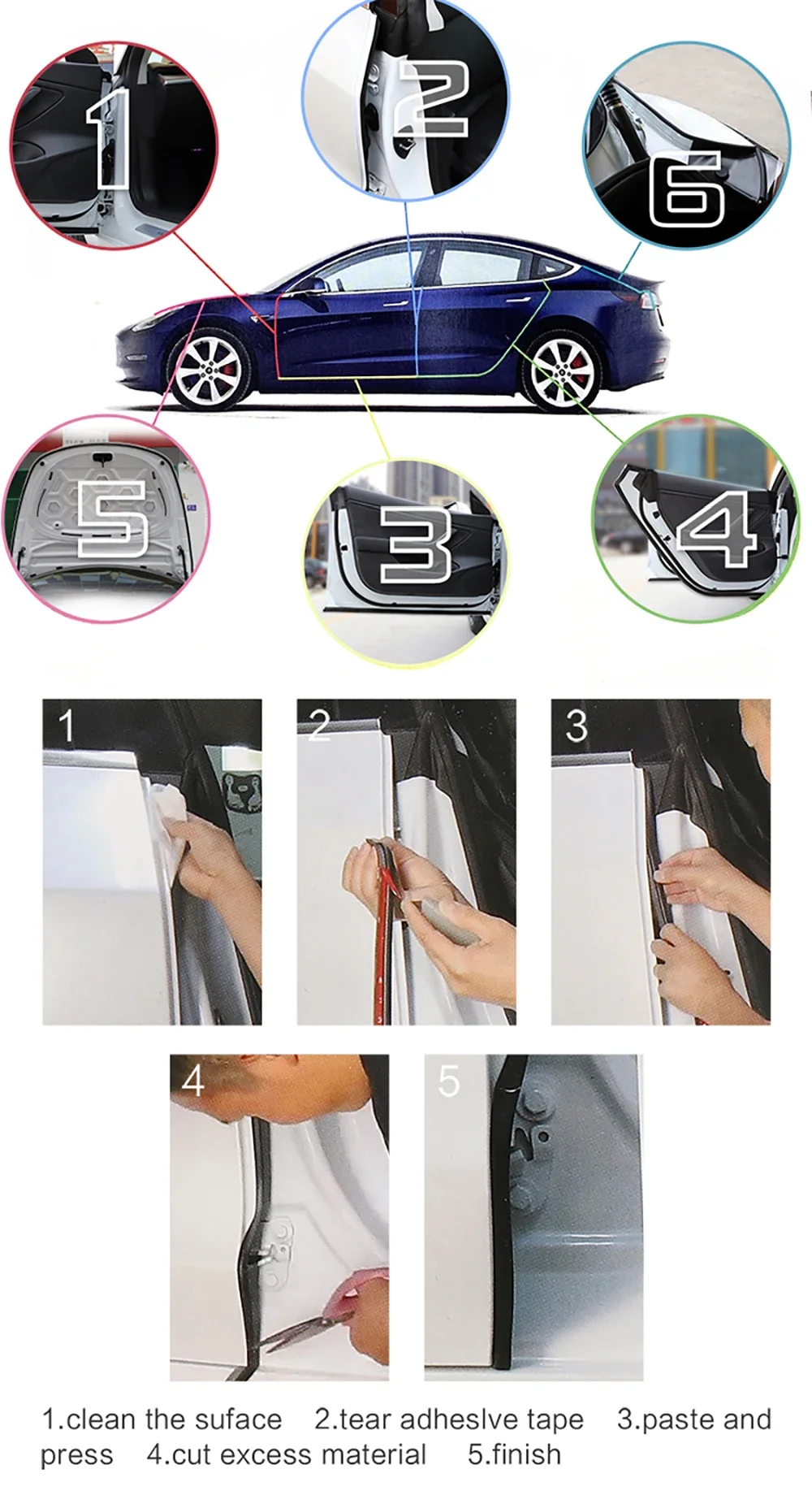 Essential Accessories: Package with 8 custom-cut seal strip. Including the front/rear door, Front Pillar(A Pillar) and Center Pillar(B Pillar). A must have for all Tesla owners! Make your car more sealed.