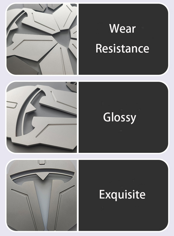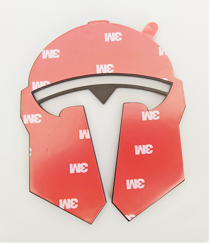 Inspired by the Mandalorian helmet, this logo is all-in-one and finely crafted to fit Tesla's profile perfectly and make the car more handsome overall.