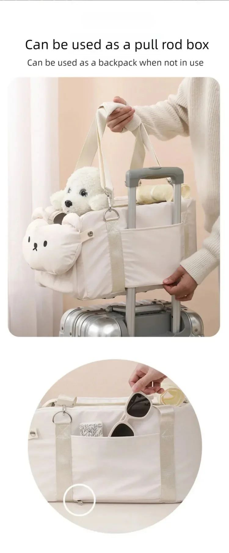 Outdoor EV car pet Bag, Travel car Dog House cat Bag, Small pet Handbag, Beige, 16.5 * 9.8 * 8.7 inches
