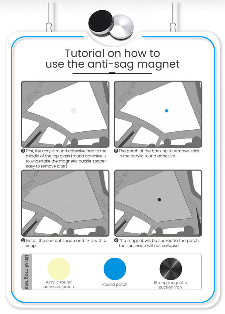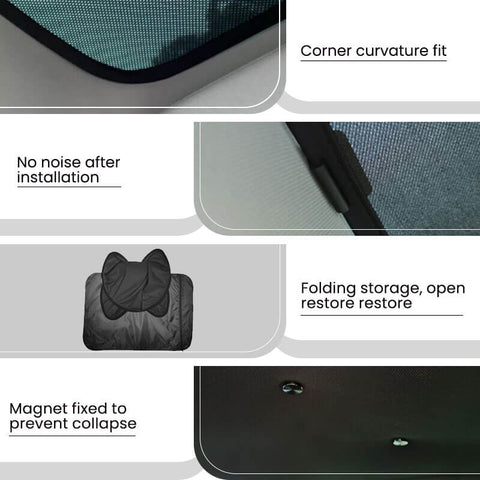 - Easy to Install and Store: Our Tesla Model S retractable roof shade is designed for a precise fit. Simply align and install it, ensuring stability and no displacement. The sunshade is foldable, allowing it to pop out and fold back in seconds, making it convenient for daily use. When not in use, you can easily stash the sunshade in the door pockets.