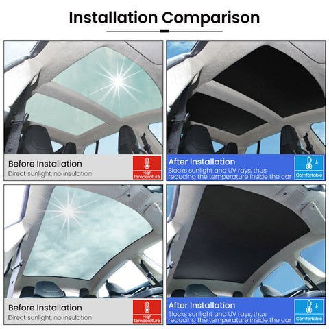 Sun Protection: The Model S UV Rays Protection Sunshade further reduces heat transfer into the cabin by blocking 99% of the sun's heat load with a glass roof sunshade and a UV/Heat Insulation Cover.Also when you travel by car or need a nap, our Custom fit Windshield Shades can block 99% sun shine and UV rays,give you and your family more protection. What's more , these shades provide effective heat insulation in summer and prevent the car's interior temperature from dropping too low in winter. Stay comfortable in any weather!