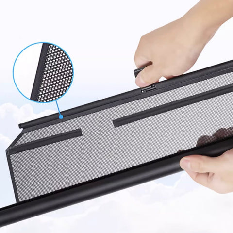- 【Excellent Material】Made of muslin mesh+aluminum alloy tube, with polymer interwoven mesh fabric, environmentally friendly and odorless, rubber wrapped design is strong and durable. This window sunshade is the best accessory for Tesla Model X.
